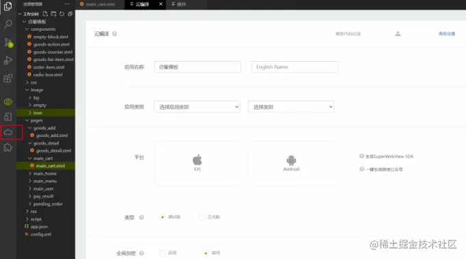 运行这套源码需要先去APICloud下载编译器,而这个编译器为我开启了新世界的大门。在对这个网站进行了深入的挖掘之后,我发现这真的是一个可以救毕设人于水火的宝藏。除了点餐模板以外,软件中还提供了很多个类型的app源码,可以直接调用。(都是能正常运行的!!!)