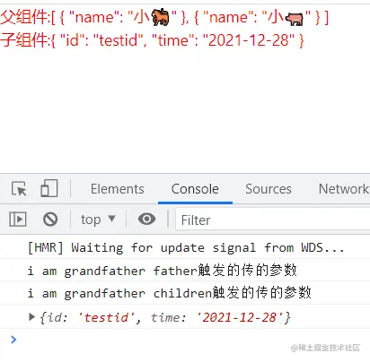 this.$emit('say','children触发的传的参数')>>>>>i am grandfather children触发的传的参数