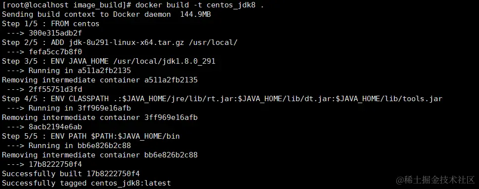 然后执行构建命令(最后一个点表示Dockerfile是在当前目录,如果Dockerfile不是当前目录,需要通过-f参数指定Dockerfile文件的位置)