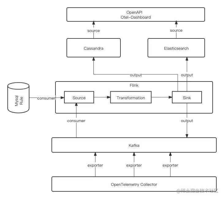 尽管 Collector 很友好的支持导出数据至阿里云SLS,但基于公司内运维可视化需求的定制性和运营成本等多方面因素,我们决定在这基础上自己实现一个完整的可观测性解决方案,用于解决之后数据分析、存储、展示的问题。