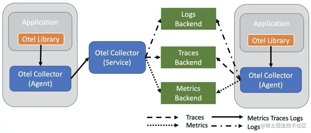 数据的采集架构和实现方案主要由 OpenTelemetry 提供的工具集完成,通过配置的方式可以很轻松的部署。同时我们对这个方案做了以下优化和改动: