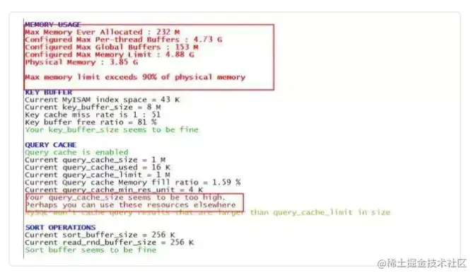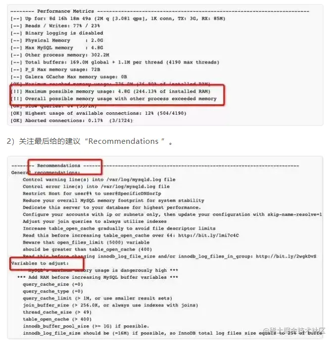 1)重要关注[!!](中括号有叹号的项)例如[!!] Maximum possible memory usage: 4.8G (244.13% of installed RAM),表示内存已经严重用超了。