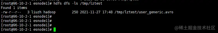 hdfs dfs -put user_generic.avro /tmp/lztest/