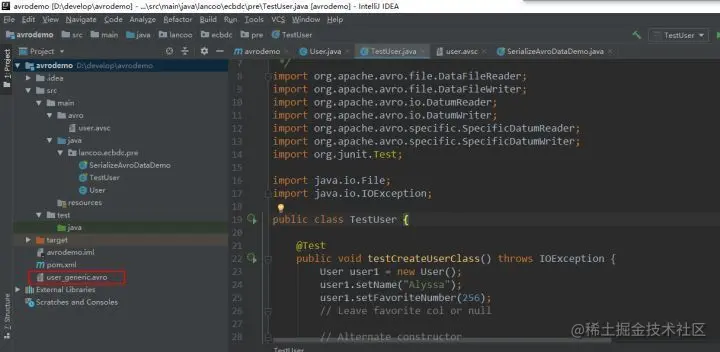 执行序列化程序后,会在项目的同级目录下生成avro数据