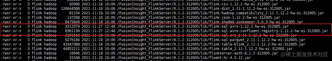 cp /opt/huawei/Bigdata/FusionInsight_Flink_8.1.2/install/FusionInsight-Flink-1.12.2/flink/opt/flink-sql-avro*.jar /opt/huawei/Bigdata/FusionInsight_Flink_8.1.3/install/FusionInsight-Flink-1.12.2/flink/lib