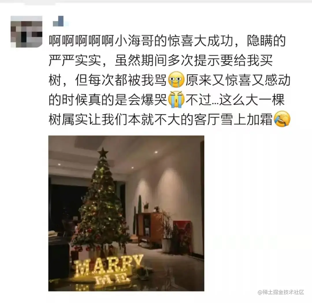 她一回家就发现了 Merry,和角落的 ma,然后对我说:你知道吗,其实你可以把 Merry Christmas 变成 Marry me,这样就变成求婚了。