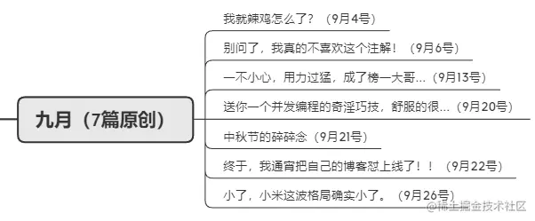 整理出来之后我自己都惊了,居然写了 85 篇原创文章,平均每 4 天就有一篇,超额完成周更任务。