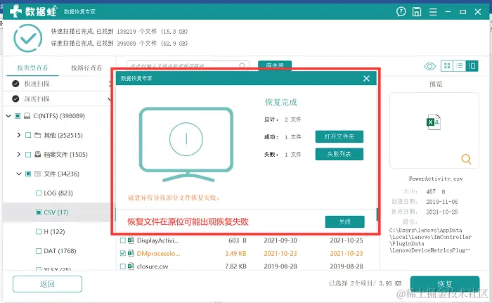 步骤三:完成深度扫描和文件预览后,单击恢复,就可以存储储存卡误删除的文件了。