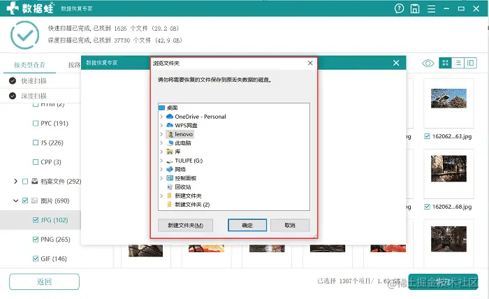 第三步:软件完成数据文件的扫描之后,完成了对文件的预览之后,就可以对扫描出来的文件进行存储了。