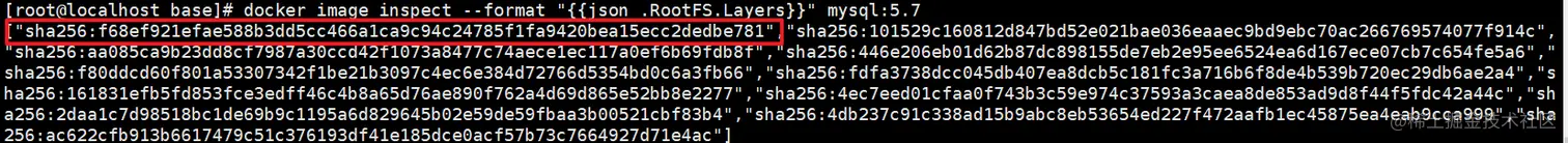 docker image inspect --format "{{json .RootFS.Layers}}" mysql:5.7