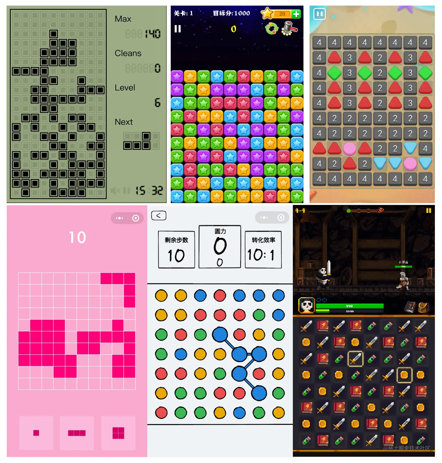 观察一下上方的这一系列各种各样的消除游戏的图片,它们都有着这样的一个共同点,就是都是按照行列进行布局,有 7 行 7 列,有 10 行 10 列的。这样的行列布局是不是特别的像一个“网格”?这就是我们今天要讲的,所有消除游戏背后都有的那张看不见的“网格”。