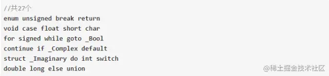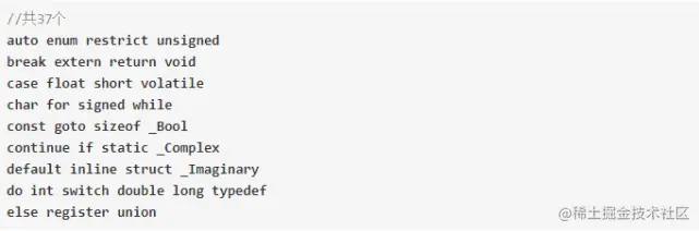 auto,restrict,extern,volatile,const,sizeof,static,inline,register,typedef,这样就形成了C的子集,C3语言,C3语言的关键字如下:
