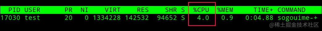 但是我用top命令查询时却发现它的CPU占用率为4%!