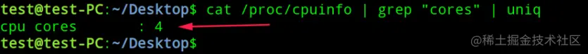 cat /proc/cpuinfo | grep "cores" | uniq