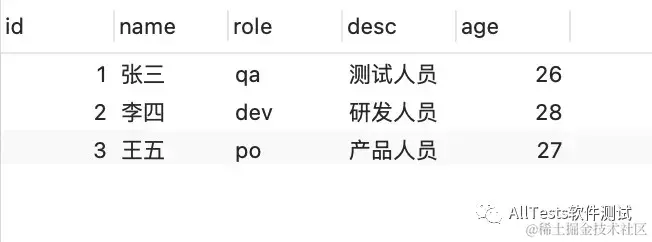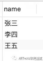 查询后,name有三个名字(去重),分别是“张三”、“李四”、“王五”。