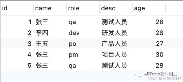如图所示:用户表(user)数据