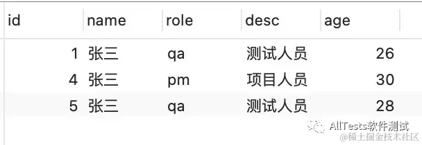 查询后,可以看到name叫“张三”的有3条数据。