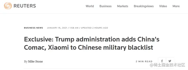 当天,美国将9家中国公司加入了所谓“军方拥有或控制”的企业制裁名单,其中包括中国商飞、小米集团、中微半导体(AMEC)等公司。