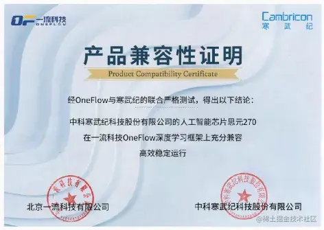 5月11日,OneFlow深度学习框架正式和寒武纪思元270智能芯片及加速卡达成适配。这一合作达成,标志着OneFlow新一代深度学习框架的生态进一步得到完善,与新兴AI芯片进一步融合。