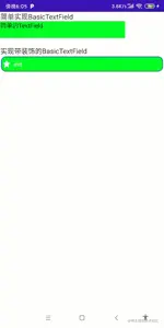 本例中我们实现一个带蓝色边框,内部填充绿色,左侧有图标的自定义BasicTextField。