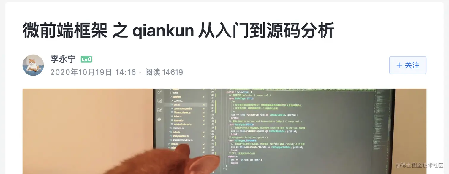 再比如 掘金李永宁 对 single-spa 和 qiankun 的源码解读文章: