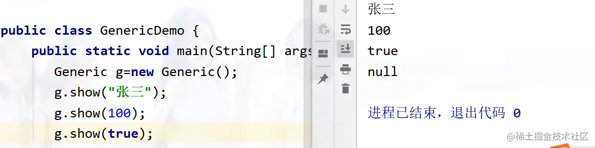 <类型1,类型2...>:指定多种类型的格式,多种类型之间用逗号隔开,这里的类型类型1,类型2可以看成是形参,将来具体调用的时候的参数看成是实参 ,这里的泛型只能是引用类型。