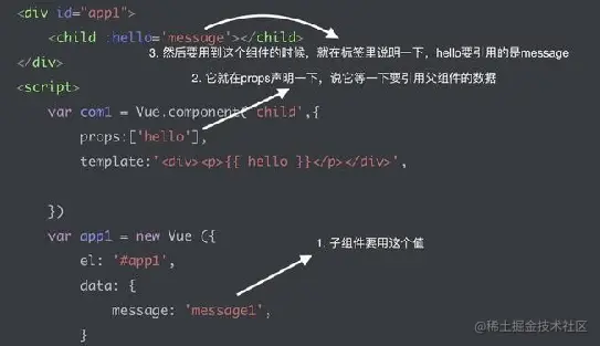 父组件的数据需要通过 prop 才能下发到子组件中.也就是说props是子组件访问父组件数据的唯一接口。