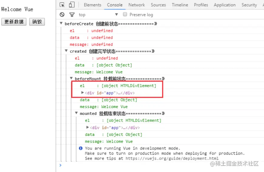 console.log("%c%s", "color:red","el : " + this.$el); //undefined