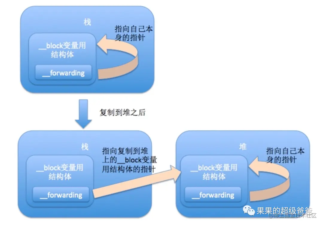 __block_byref_val_0结构体通过成员变量__forwarding指针访问成员变量val