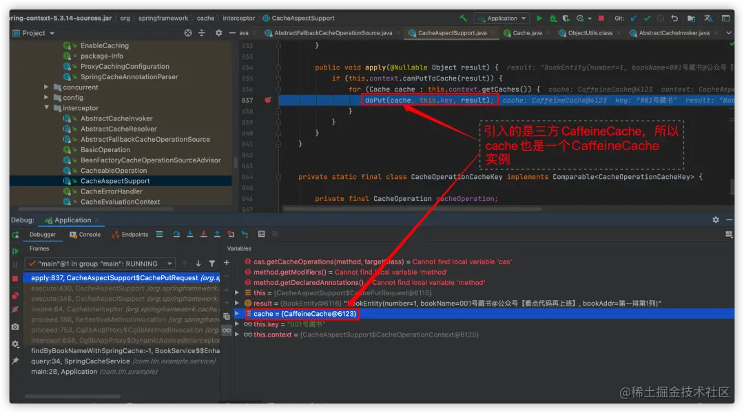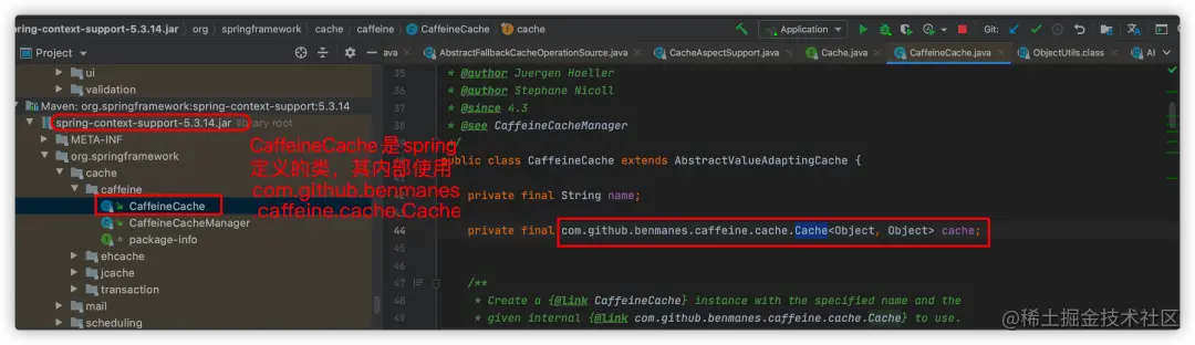 如果我们引入了三方的cache,比如Caffeine,那么,底层就是使用Caffeine.Cache来存储的。