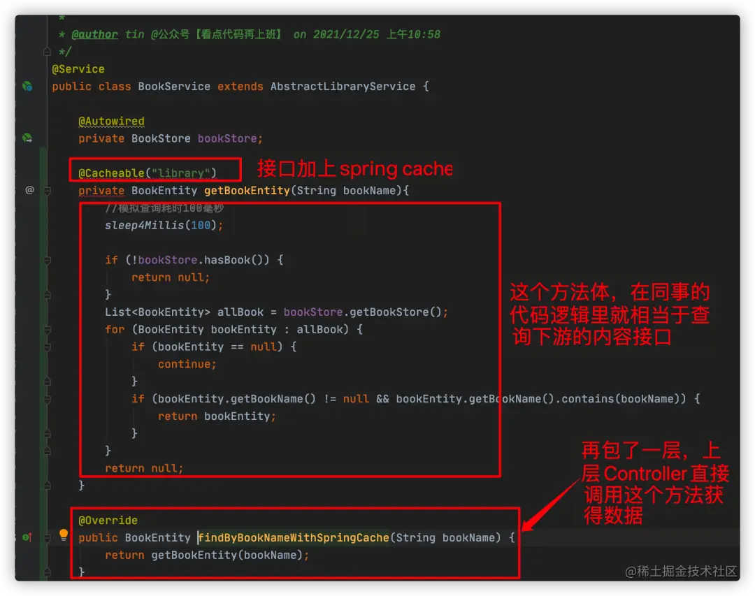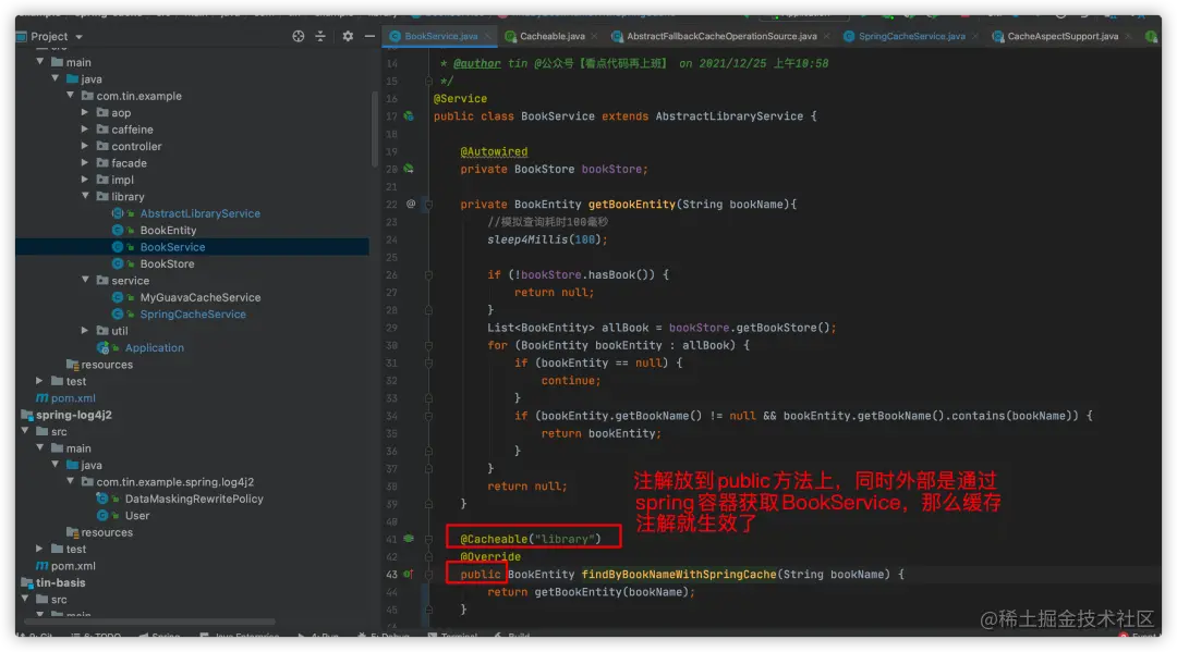 我们先把BookService的缓存注解位置调整一下,让方法能够正常走缓存逻辑:
