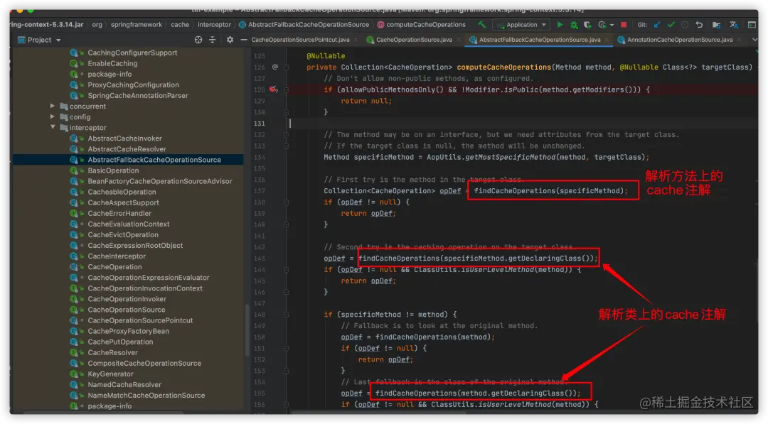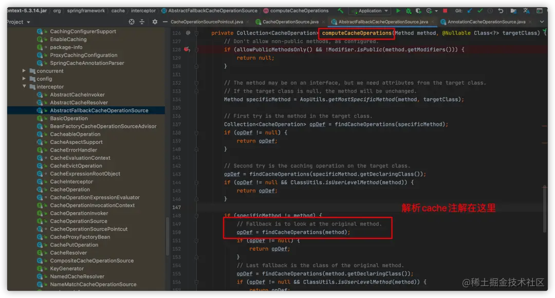 computeCacheOperations方法中,真正解析方法上cache注解的地方在findCacheOperations方法: