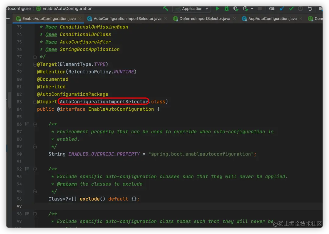 这是spring boot搞的鬼,在我们的启动类上有一个@SpringBootApplication注解,这是一套组合注解,我们顺着这个注解内部的定义,找到@EnableAutoConfiguration,再找到@Import(AutoConfigurationImportSelector.class)
