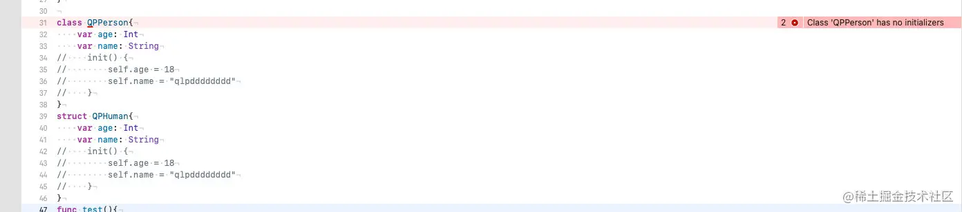编译器不会为class提供默认的初始化器,需要程序员自己提供一个指定初始化器。