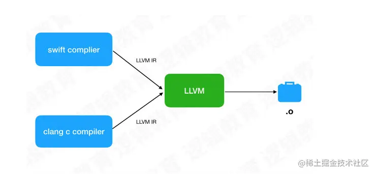 iOS开发语言不管是OC还是Swift后端都是通过LLVM进行编译的,如下图所示:
