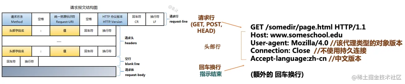需要注意的是,HTTP 请求报文或者响应报文在 TCP 连接通道上进行传输的时候,由于这些报文比较大,为了更容易和准确可靠的传输,TCP 会将 HTTP 报文按序号分割成若干报文段 并加上 TCP 首部,分别进行传输。接收方在收到这些报文段后,按照序号以原来的顺序 重组 HTTP 报文 。
