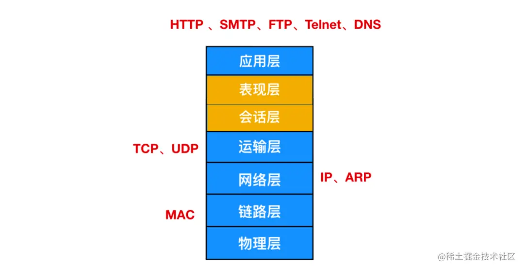 还有一种就是 OSI 七层网络模型,它就是在五层协议之上加了表示层和会话层。