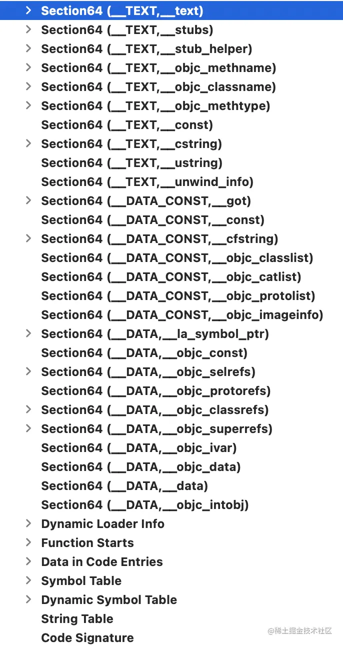 - __LINKEDIT;包含了方法和变量的元数据,代码签名等信息