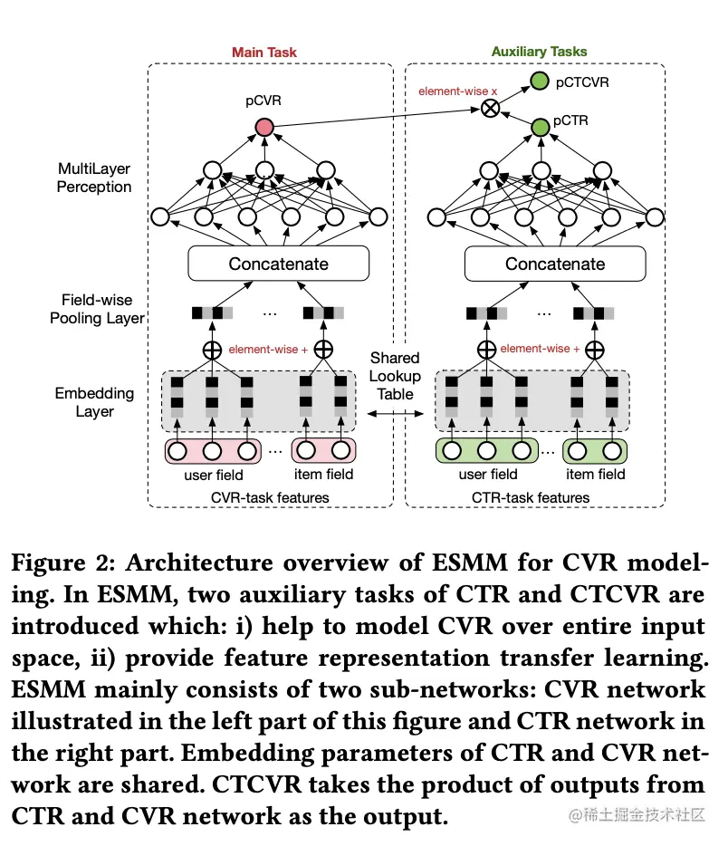 简介:本文介绍的是阿里巴巴团队发表在 SIGIR’2018 的论文《Entire Space Multi-Task Model: An Effective Approach for Estimating Post-Click Conversion Rate》。文章基于 Multi-Task Learning (MTL) 的思路,提出一种名为ESMM的CVR预估模型,有效解决了真实场景中CVR预估面临的数据稀疏以及样本选择偏差这两个关键问题。后续还会陆续介绍MMoE,PLE,DBMTL等多任务学习模型。