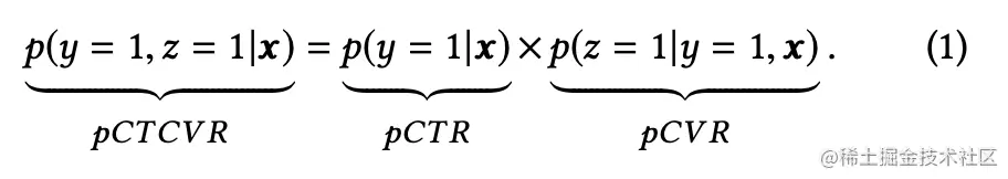 - CTCVR = 转换数/曝光数。是预测“item被点击,然后被转化”的概率。