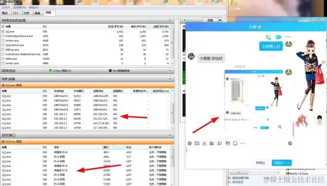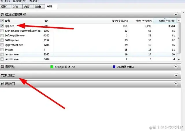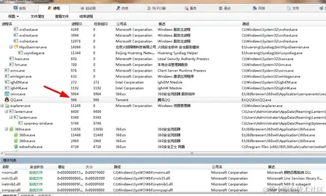 这里我们设置监听QQ连接的相关功能,首先找到QQ进程,如下: