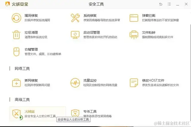 打开火绒安全,选择安全工具,如下: