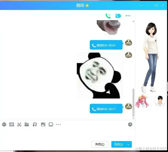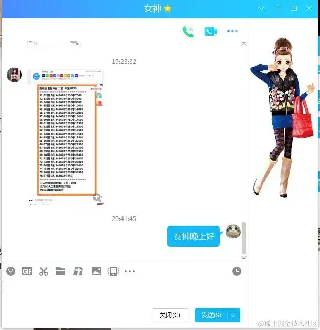 勾选好了后,我们给女神发送一个字节稍微大点的消息,比如图片,那就截个图吧,如下: