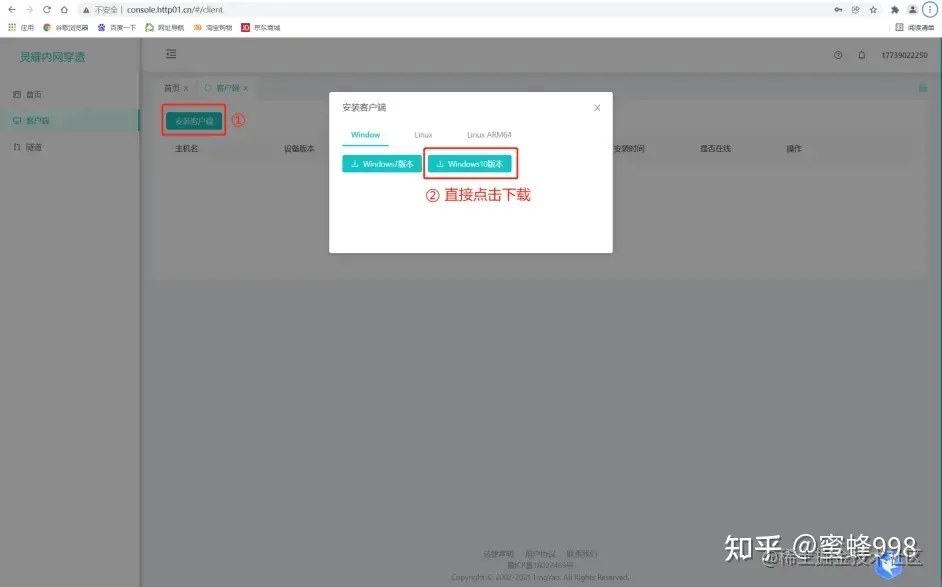 点击 【安装客户端】按钮 找到Windows客户端.