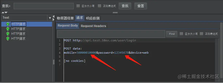 可以看到,文件中的数据被脚本成功引用。JMeter使用CSV实现参数化就是这么简单。