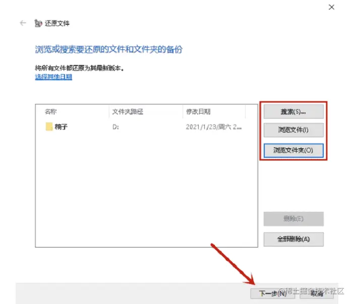 步骤三:在弹窗中找到不小心删除的电脑文件,进行文件的复原。你可以在窗口右侧上方的【搜索】,输入文件名称完成文件查找,下方的两个选项【浏览文件】【浏览文件夹】也能找到需要恢复的文件。