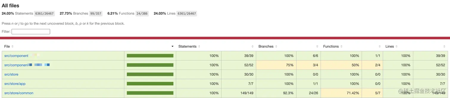Lines(行覆盖率):是否每行都执行了,大部分情况下等于 Statements