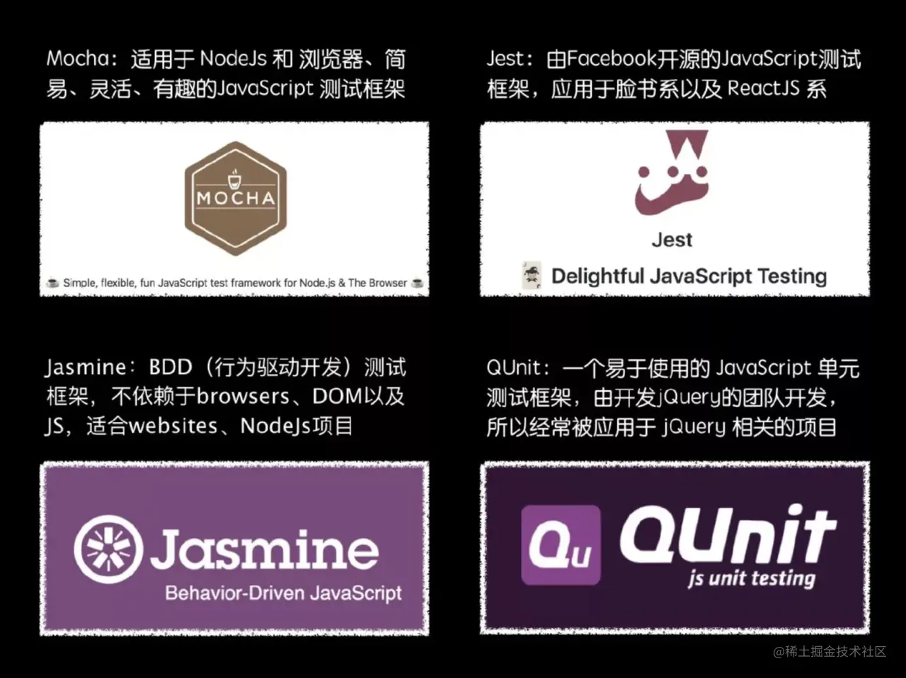 | 测试框架 | 断言 | Mock | 异步 | 快照 |