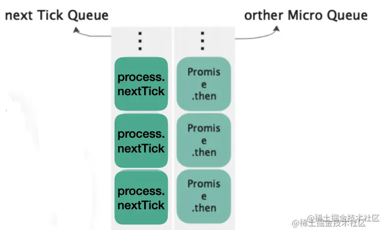 - 微任务:执行所有 nextTick 的微任务,再执行其他的普通微任务