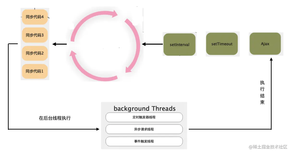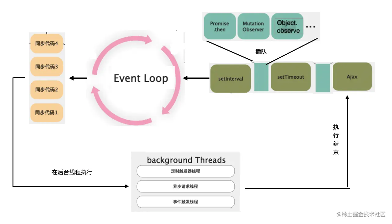 因为这些异步任务是在别的线程执行完,然后通过任务队列通知下主线程,是一种事件机制,所以这个循环叫做 Event Loop。